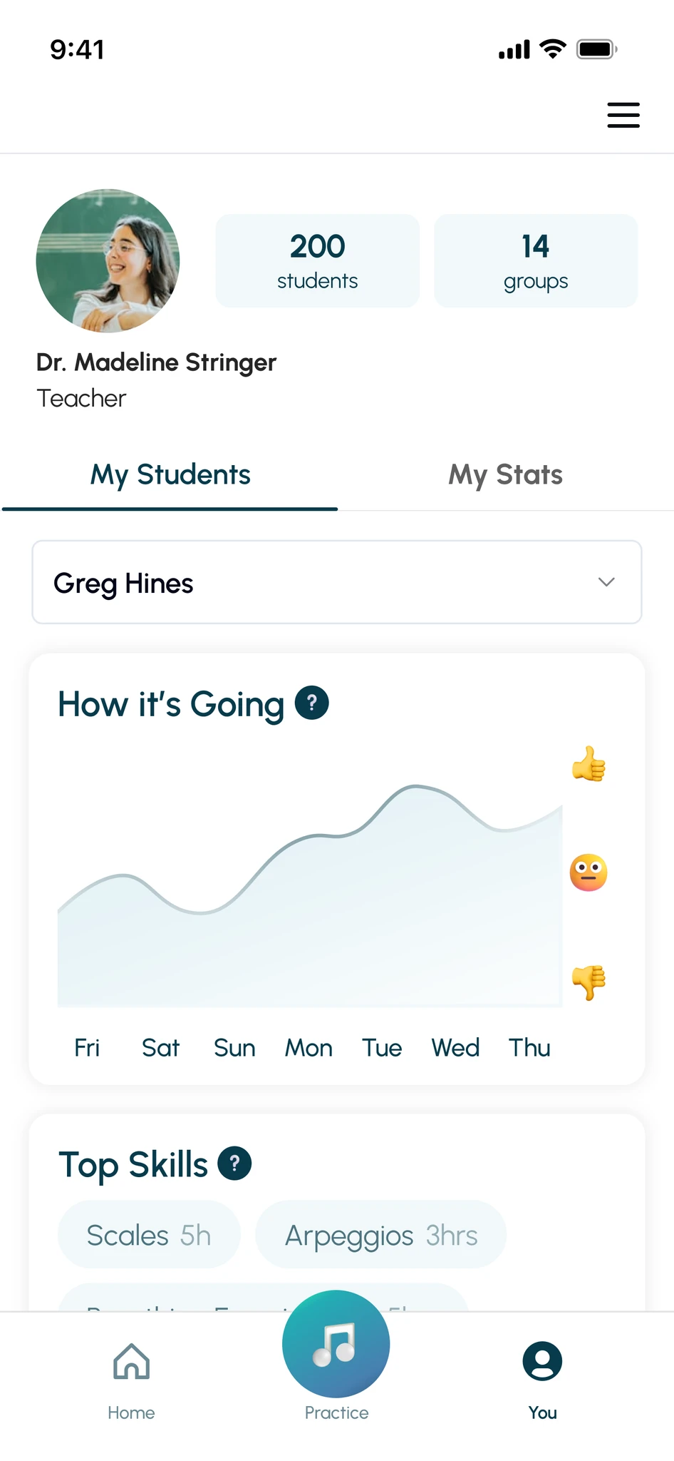 Keep a pulse on practice like never before. Get instant visibility into student practice—what they played, what they struggled with, and how it’s going.